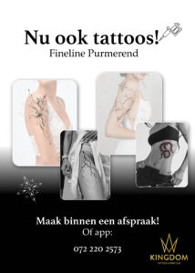 Om tattoos te promoten in een zaak waar voornamelijk gepierced wordt heb ik de vraag gekregen of ik hiervoor een promotie poster wilde ontwerpen. De opdrachtgever wilde graag een overzichtelijke, minimalistische stijl aanhouden. Deze wensen heb ik opgevolgd en na meerdere schetsen te maken met het gebruiken van verschillende foto’s ben ik uiteindelijk tot een definitief ontwerp gekomen waar de klant tevreden mee was. Deze uiting wordt zowel gebruikt als poster als voor reclame op elektronische borden.